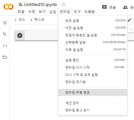 - 하지만 기본 Colab 페이지에서는 숨겨져 있음