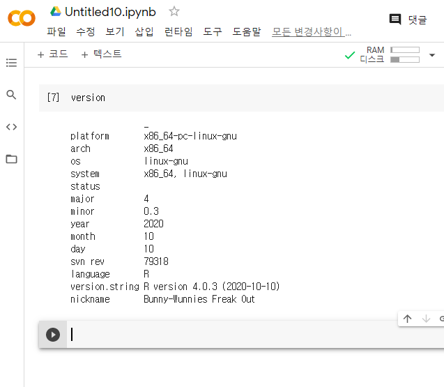 - 이젠 Colab Notebook을 R프로그램 엔진으로도 구동 가능