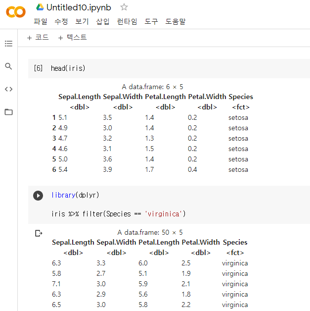 Colab에서 R코드를 실행할 수 있다는 사실을 얼마 전에 알게 됨